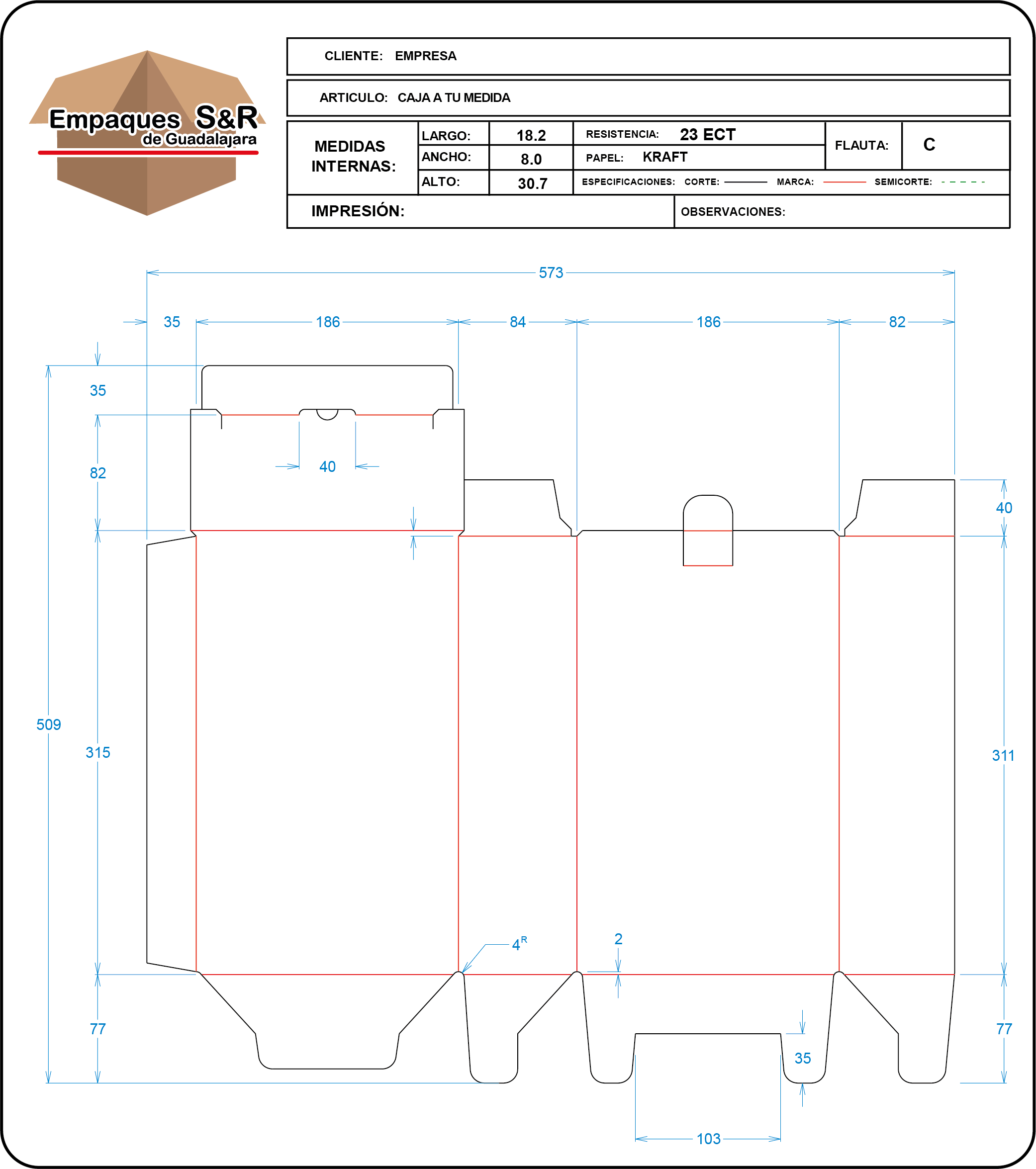 Empaques S&R es una empresa especializada en la fabricación de cajas de cartón a la medida, así como en una amplia gama de soluciones en cartón para empaque. Nos enfocamos en satisfacer las necesidades específicas de cada cliente, ofreciendo asesoría personalizada en el diseño estructural y gráfico de empaques, con un enfoque en impresión flexográfica.